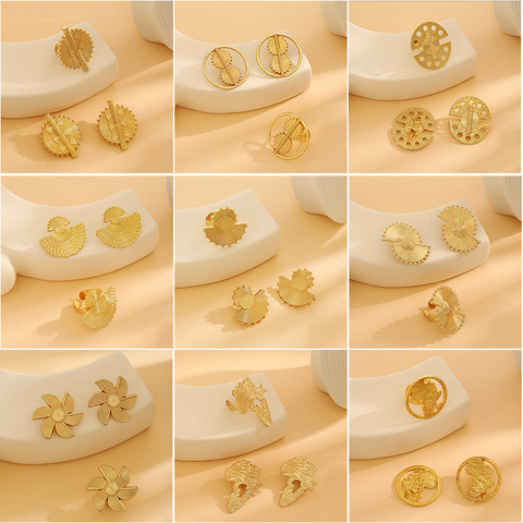 เครื่องประดับทองแดงที่สวยงามสำหรับผู้หญิงชุดต่างหูทรงเรขาคณิตชุบทอง18K ขายส่ง