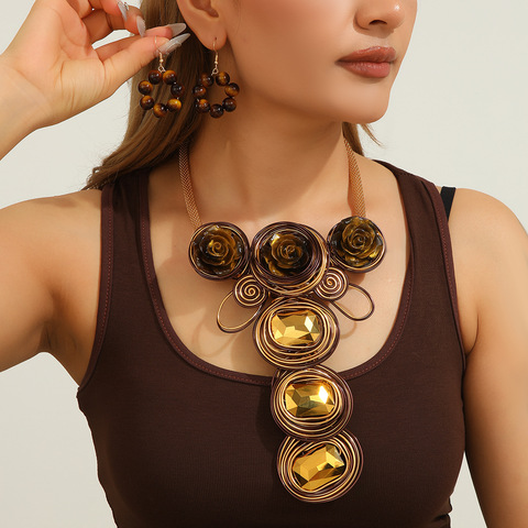 ชุดต่างหูสร้อยคอดอกไม้ทำมือทำจากเรซินเครื่องประดับแอฟริกันชุดงานเลี้ยงชาติพันธุ์เครื่องประดับแฮนด์เมดบุคลิกภาพ