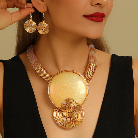 Büyük Spiral takı seti kolye kolye ve damla küpe ile Vintage tarzı kişilik takı seti